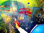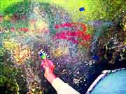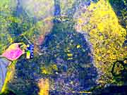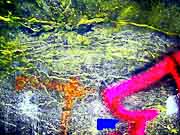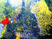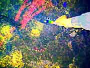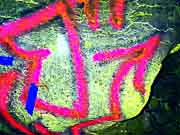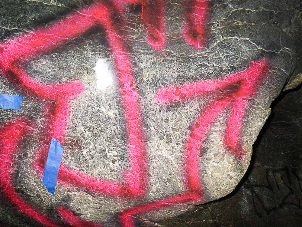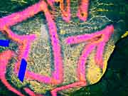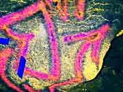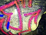 This is a comparison of a selection of photos with five different DStretch processing techniques, using the JS Applet. The photo number and the original photo are shown in the first two columns. Since the primary historic colors we have noticed in Sandia Cave are yellow, red and black, we have chosen the LDS, YBK, YDS, YDT, and YBL plug-ins to take a closer look at these particular locations in the cave. Fortunately the first set of photos did not have overlying graffiti and we think there is reason to believe the faint markings are authentic. Unfortunately, the other areas at the bottom of the chart were almost covered over by a modern graffiti vandal who probably had no idea they were destroying an interesting and very important historic artifact (the previously illustrated yellow hand print) from a previous "graffiti artist". It could have been an ancient cousin of a present day visitor! It appears that the modern day graffiti vandals have no respect for our ancestors. |