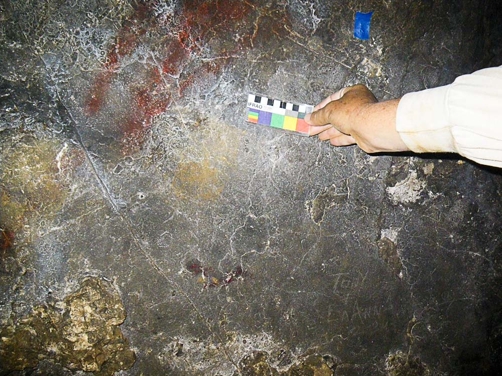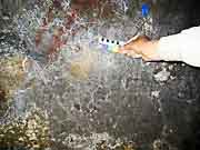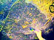 Note: the images above are 180 pixels wide. If you want to try your hand at DStretch processing to improve these results, click on the original (at the left) to get a 1000 pixel wide image. |